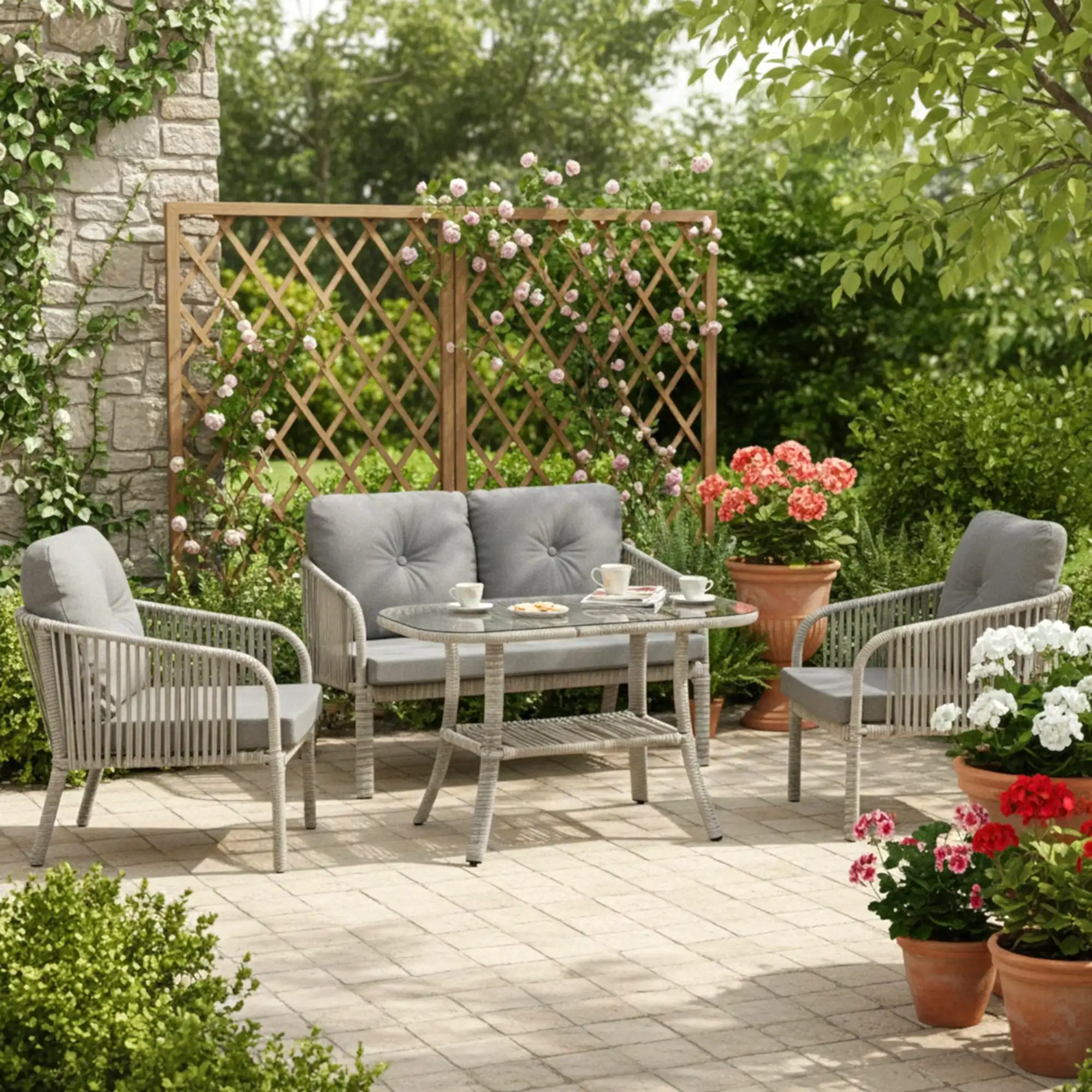Bu özel 2+1+1+ sehpa bahçe balkon takımı, bahçenizde, verandanızda veya balkonunuzda sıcak ve keyifli anlar yaşamanız için tasarlandı.