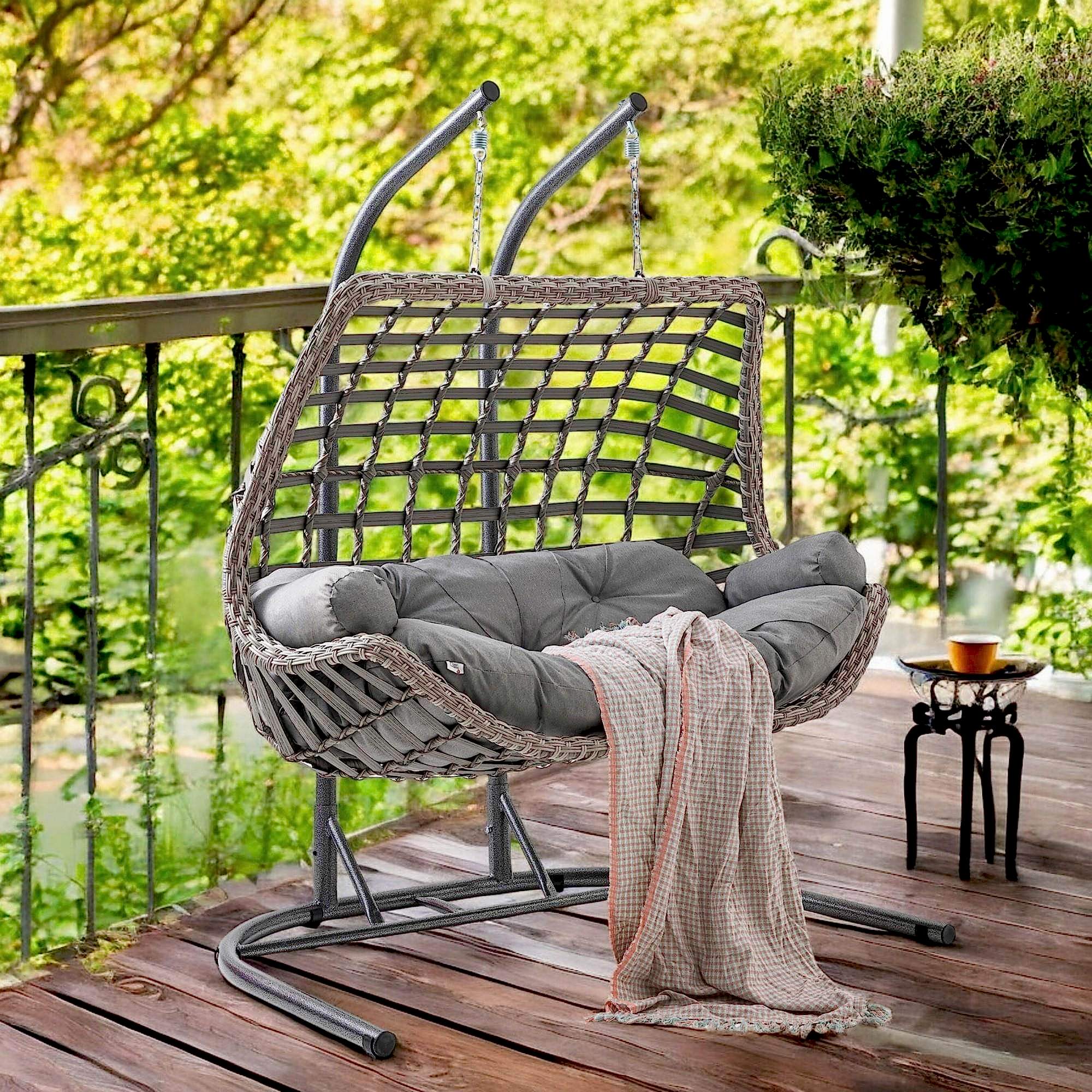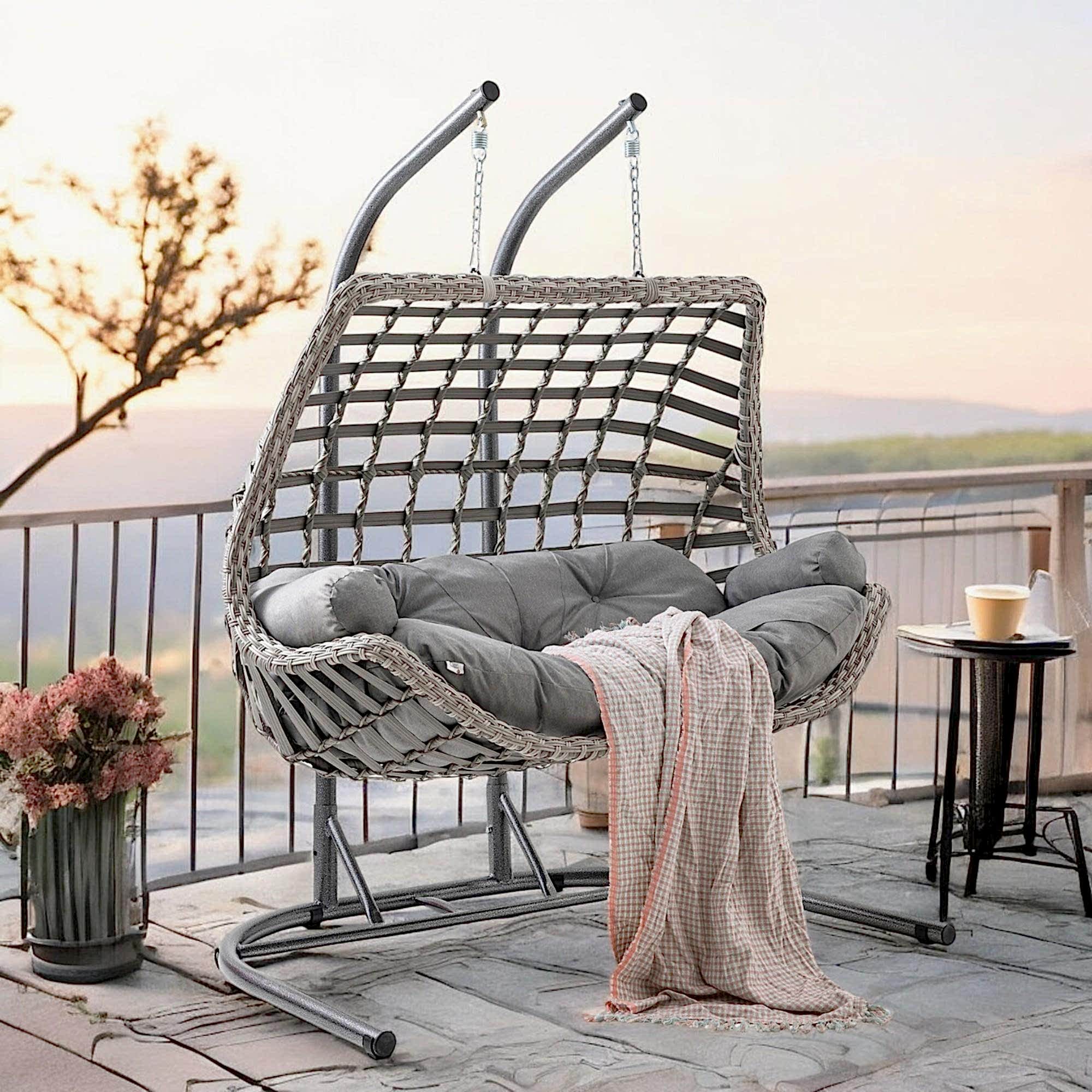 Capri Swing Cunda Çiftli Rattan Bahçe Salıncağı | Balkon Salıncağı