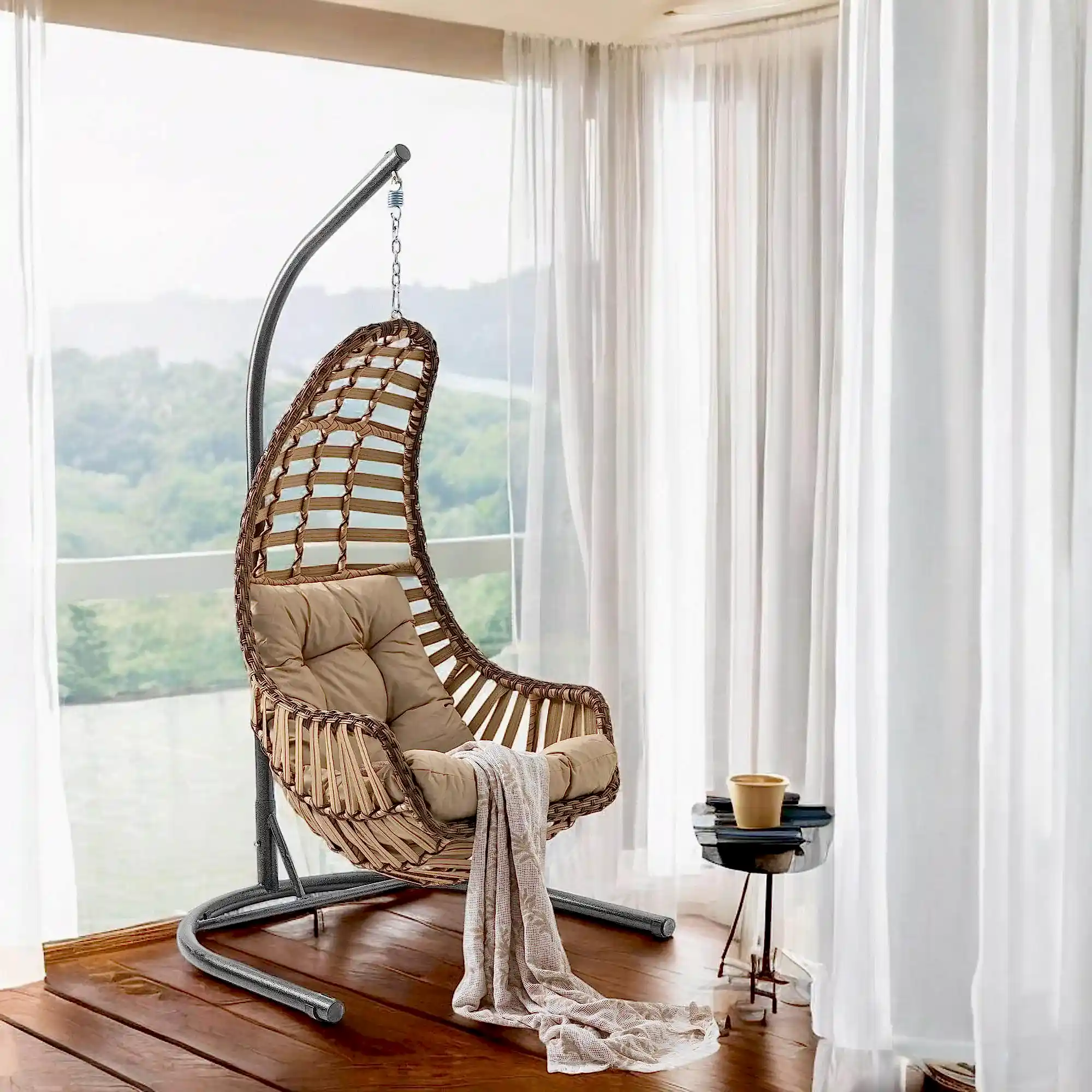 Çok Yönlü Kullanım: Tek kişilik bahçe salıncağını dilerseniz dış mekan dekorasyonunda, dilerseniz de iç mekan dekorasyonunda kullanabilirsiniz.