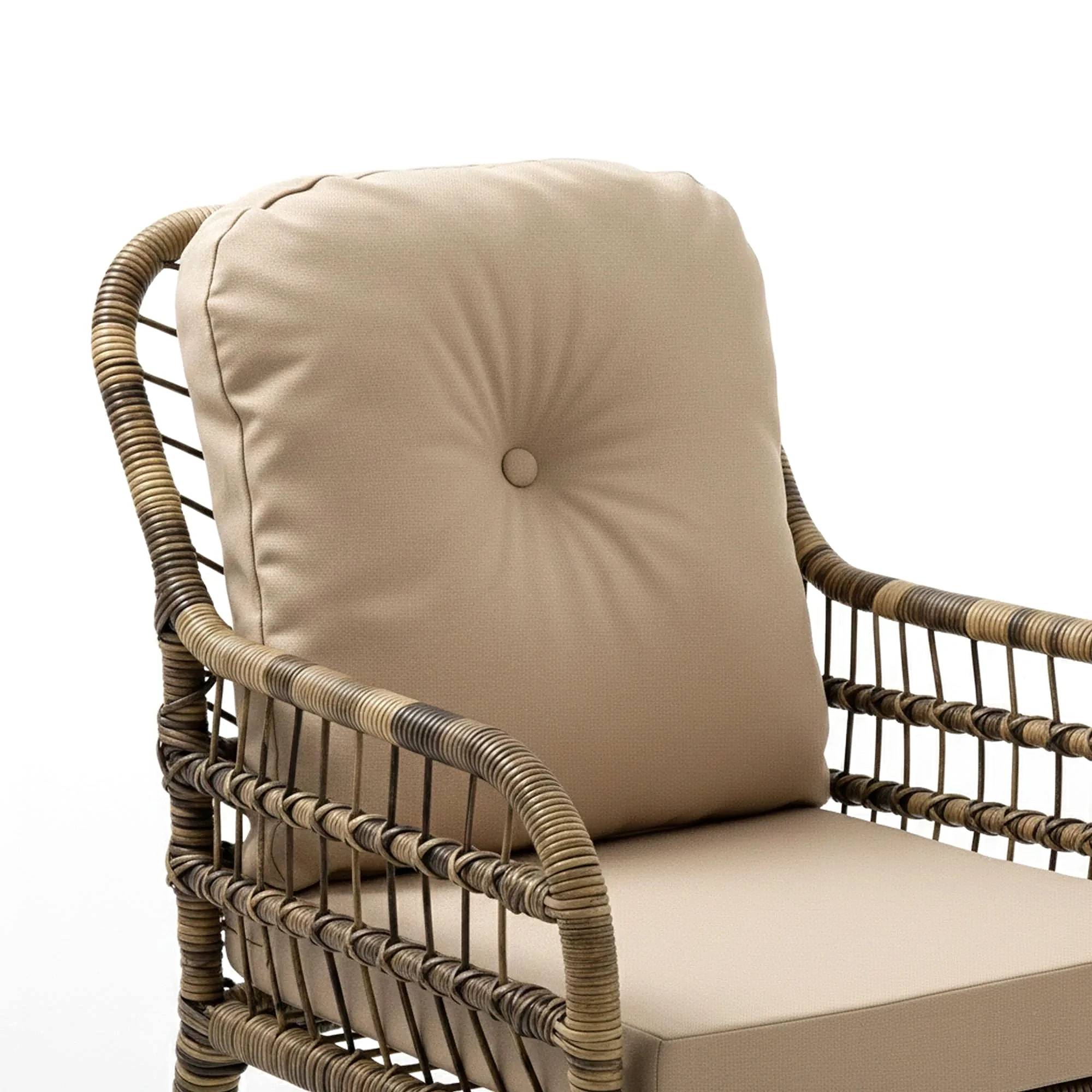 Plastik veya düşük kaliteli dış mekan oturma gruplarına kıyasla metal iskelet ve rattan örgü yapısı sayesinde daha sağlam ve uzun ömürlü bir kullanım sunar.
