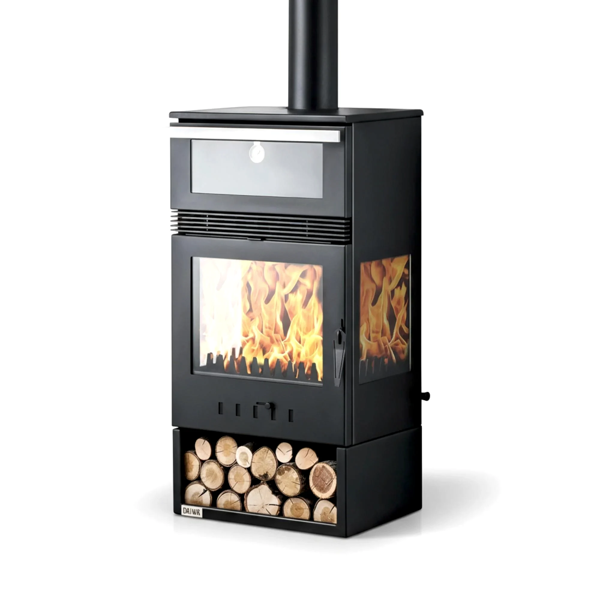 Geniş ön yükleme kapağı odun eklemeyi kolaylaştırır. Üç camlı tasarım, alevin dansını izleme imkânı sunarken ortamınıza şömine atmosferi katar. Takmatik ızgara sistemiyle temizlik ve bakım işlemleri oldukça basittir.
