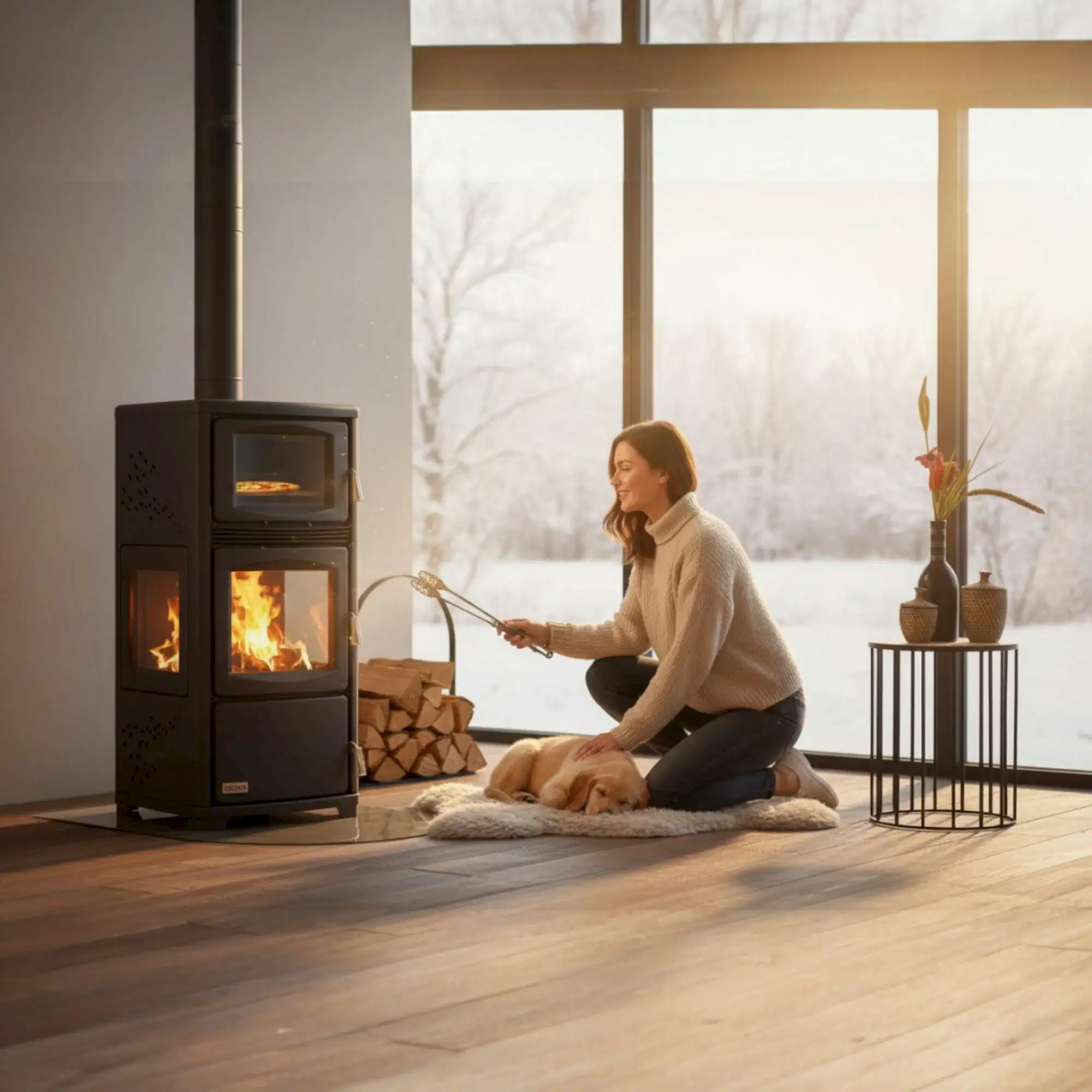 ReHome Teba DKS-19 Katı Yakıt Sobası, klasik odun sobası gücünü modern teknolojiyle birleştirir. Fan destekli hava dolaşımı, mekanik termostatlı hava kontrolü ve üç camlı alev görseliyle yaşam alanlarınıza hem ısı hem de estetik katar. Tam verimli yakma sistemi sayesinde 20 – 50 m² alanları etkili şekilde ısıtır.