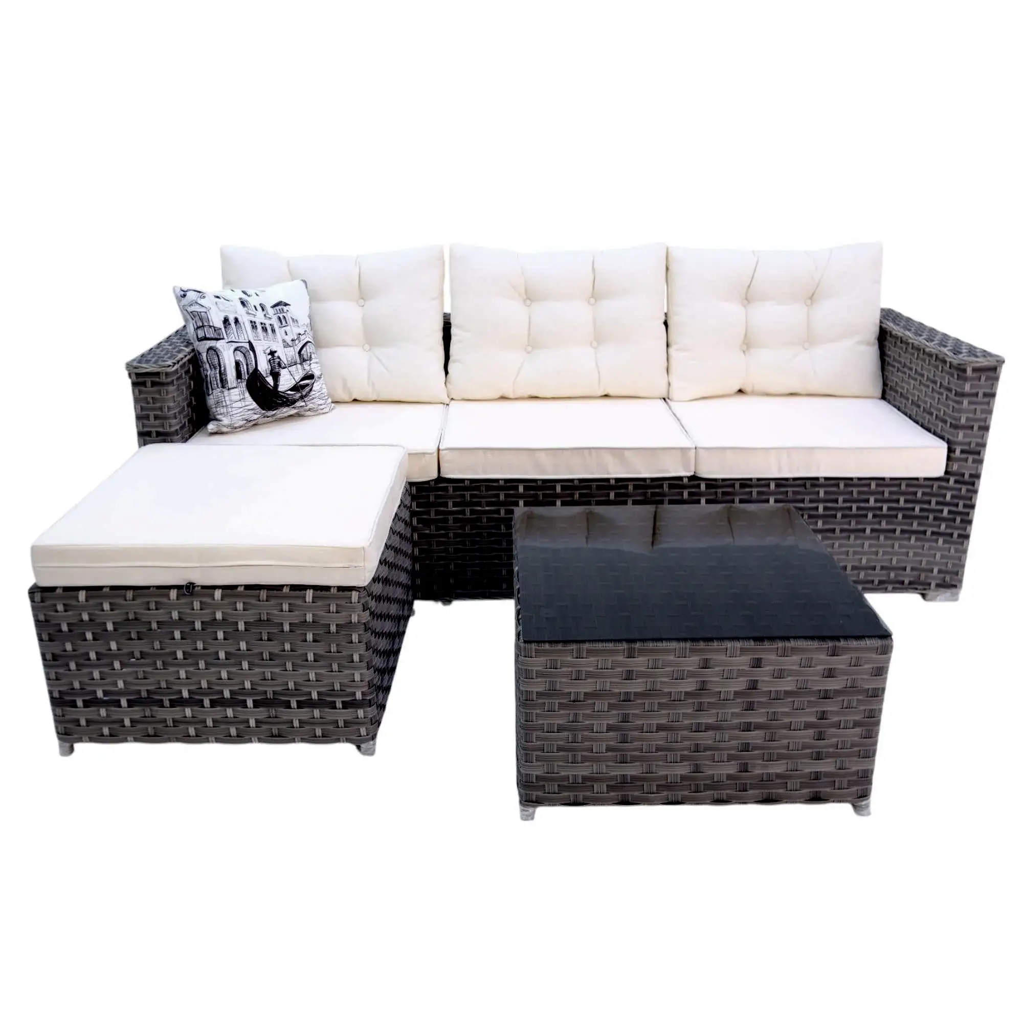 Şıklık, konfor ve dayanıklılığı bir araya getiren Savanna Rattan Puflu L Köşe Koltuk ile bahçenizde, balkonunuzda veya terasınızda rahatlığın tadını çıkarın. Modern tasarımı ve doğal rattan dokusu, açık alanlarınıza sıcak ve zarif bir hava katarken, konforlu minderleriyle keyifli vakit geçirmenizi sağlar.
