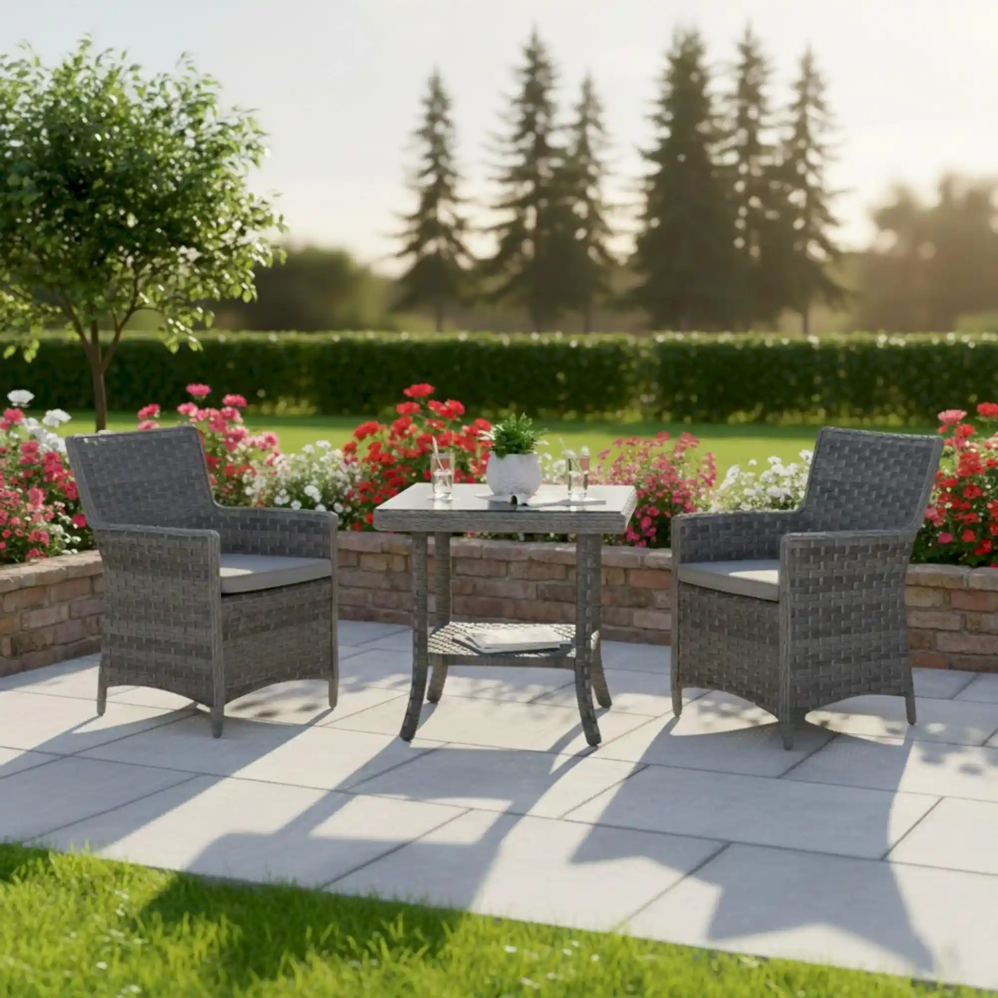 Zenit Dedikodu Balkon Bahçe Takımı 1+1 Sehpalı, iki adet tekli koltuk ve tamamlayıcı sehpası ile balkon, teras ve bahçelerde keyifli oturum alanı sunan dış mekan mobilyası setidir.